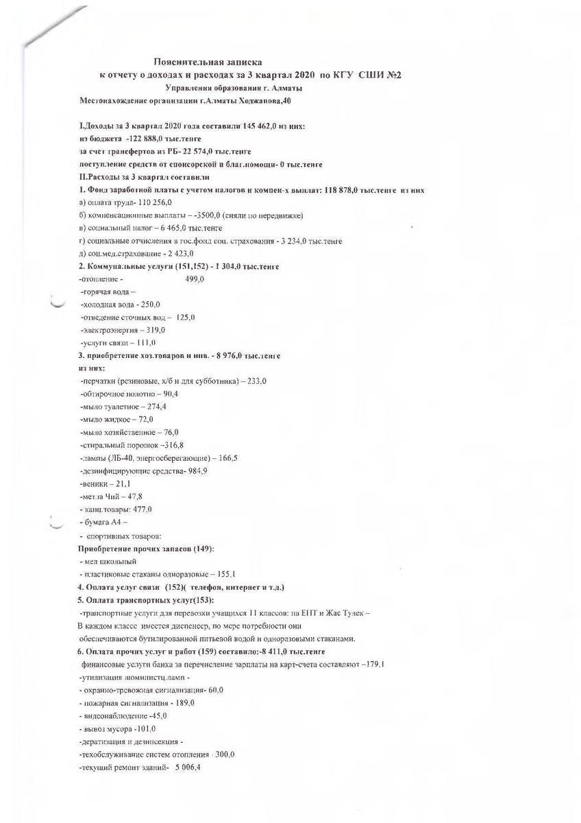 Отчет о доходах и расходах за 2 квартал 2020 г